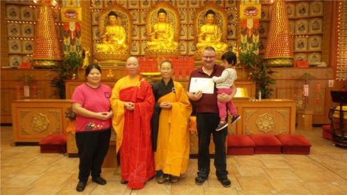 王慧特別帶著4位女兒參加,在歡喜中皈依。青年周莉琼陪同在調養院的病友前來皈依,希望他能早日康復。老菩薩張秀蓮偕同女兒及外孫皈依,雖然女婿是回教徒,但也樂見孩子成為佛教徒。來自新加坡的博士生周煒勁在德籍太太的陪同下,肯定他信仰的選擇。