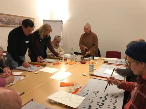 德國佛教會(DBU)2019年冬季佛學課程「Das Herzsutra heute(現代心經)」,11月15至17日在柏林藏傳道場Dharma Mati Berlin舉行,邀請漢傳禪宗柏林佛光山住持妙祥法師、藏傳薩迦派翻譯暨弘講師Arne Schelling授課,帶領16位來自柏林、德國南部Wiesbaden、Osnabrueck的學員,透過茶禪、書法及義理講授,體會《心經》的意涵,加深個人修行的助緣。