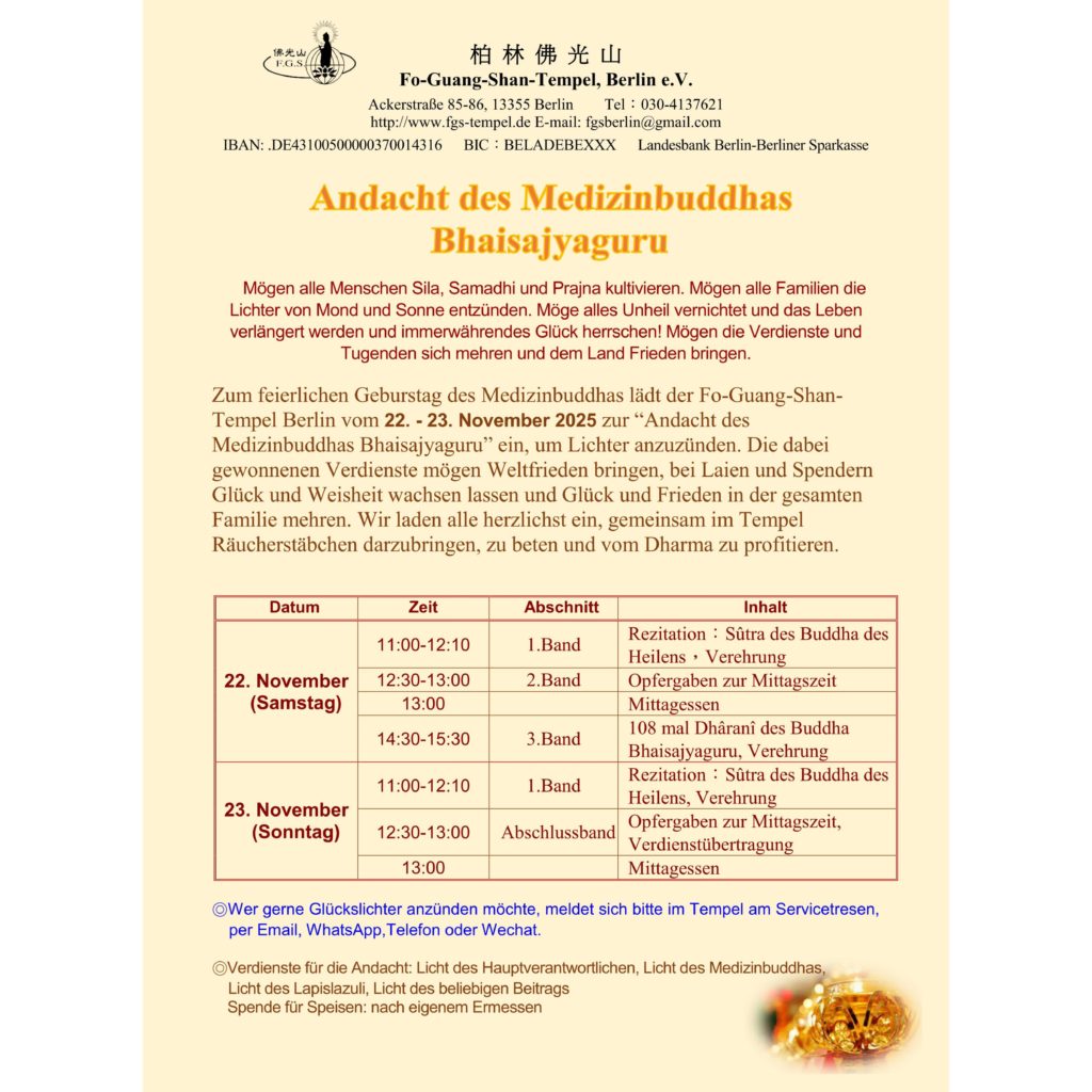 Monatliche Dharma-Spende für den Fo-Guang-Shan Tempel Berlin e.V.
